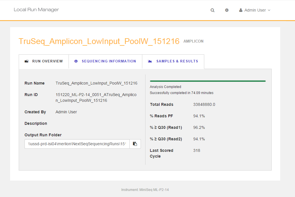 You can monitor your run on the instrument or remotely with Local Run Manager or BaseSpace Cloud or BaseSpace Onsite.