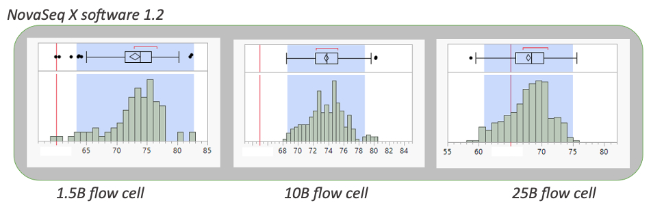 Figure 2: Pass filter distribution for NovaSeq X software 1.2 for three flow cell types